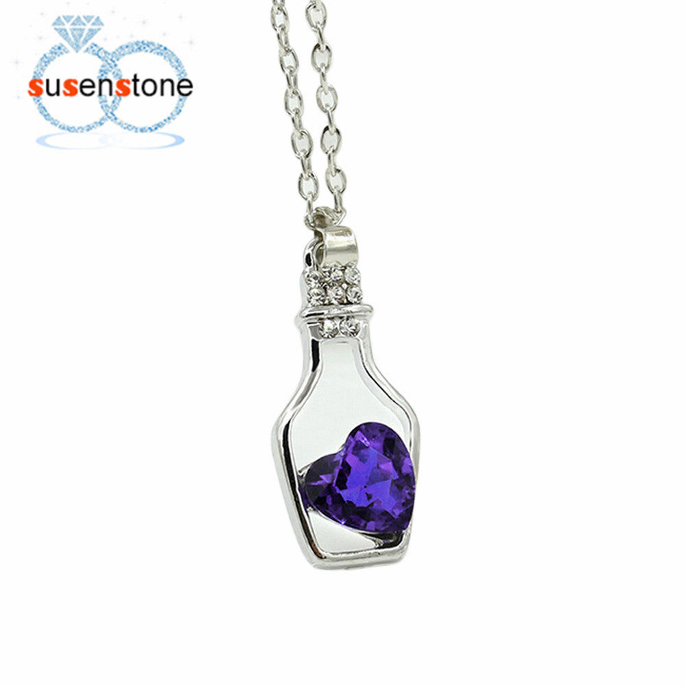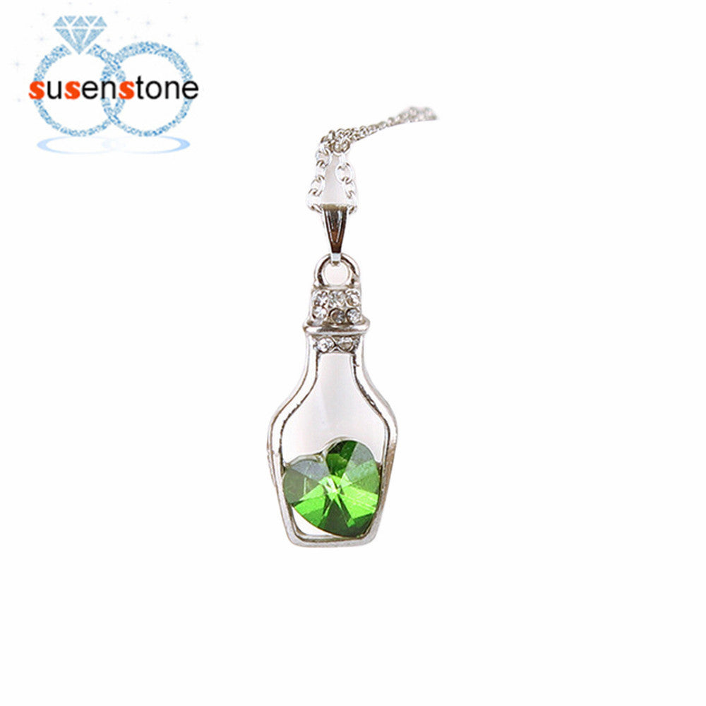 necklaces: Love Drift Bottles Pendant Necklace Heart Crystal Pendant