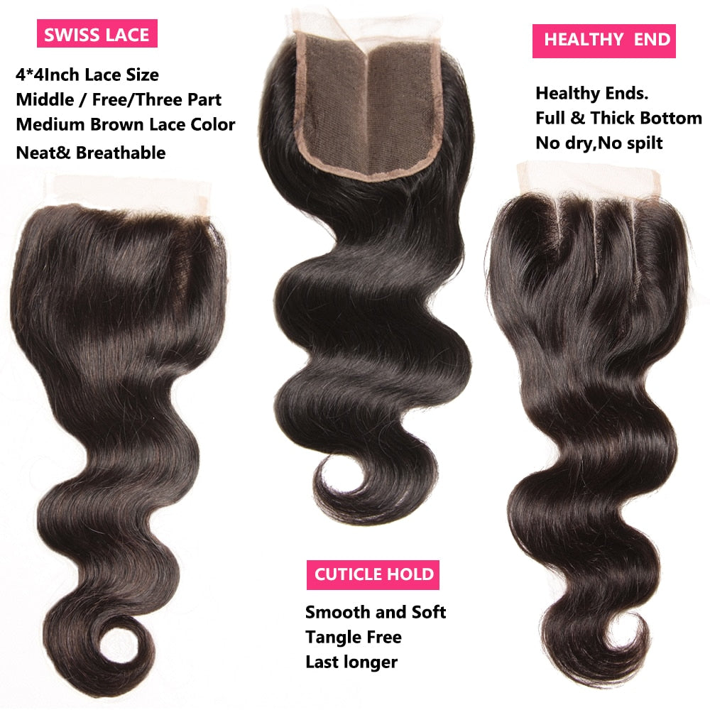 Hair Brazilian Body Wave Bundles With Closure 4*4 Lace Closure